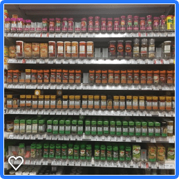 Selain karena rapi dan tertata, rempah-rempah dari supermarket ini suka dibungkus dalam wadah-wadah cantik transparan, sehingga isinya terlihat. Tutupnya pun dipasangi oleh stiker, jadi ketika mereka ditata rapi di dalam laci, bisa dengan mudah ditemukan. Pilihan mereknya pun bermacam-macam, bisa merek toko (yang tentunya murah meriah), atau merek-merek ternama yang harganya bisa tiga, hingga lima kali lipat dari merek toko. Yang pasti, rempah-rempah ini ketahuan asalnya dari mana.
